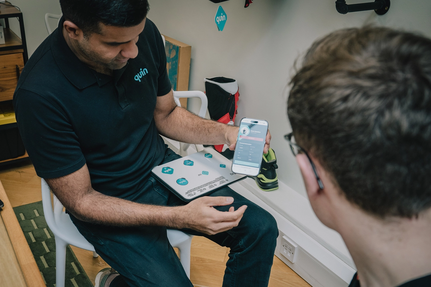 Малите уреди, познати како Quin Pods, се само малку поголеми од парче мастика и се поставуваат во специјално дизајнирани и одобрени прегради во EPS-поставата на кацигата – синхронизирајќи се со телефонот на возачот преку Bluetooth и специјална Quin апликација за мерење податоци во реално време.